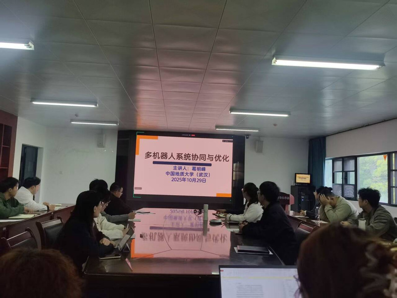 2025年10月29日,中国地质大学(武汉)葛明峰教授应9728太阳集团邀请,在产教融合中心24341会议室作题为“多机器人系统的协同与优化”的学术报告。电气学院部分教师及研究生参加了报告会,报告会由研究生院院长詹习生教授主持。