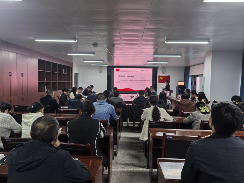 微党课学习环节内容丰富、重点突出。陈兮书记率先领学,围绕习近平新时代中国特色社会主义思想,深入解读《中国共产党思想政治工作条例》,并结合《习近平:在庆祝中华人民共和国成立76周年招待会上的讲话》等,强调新中国76年来取得的彪炳史册的辉煌成就,号召党员们传承奋斗精神,为国家发展贡献力量。涂建同志聚焦作风建设,领学《深刻把握深入贯彻中央八项规定精神的重大意义》,并结合中央纪委国家监委公开通报的典型问题及湖北省纪委办公厅关于酒驾醉驾问题的通报案例,开展警示教育,筑牢党员思想防线。李维同志以“名言警句月月学,以案说纪月月讲”形式开展廉政教育,通过鲜活案例与警示名言的结合,强化党员廉洁自律意识。朱军同志领学《习近平谈治国理政》第五卷部分内容,引导党员们在原著原文中感悟思想伟力。严海燕同志以《学习贯彻党的二十届四中全会精神,乘势而上推动“十五五”发展》为题作宣讲,强调“十五五”时期是基本实现社会主义现代化夯实基础、全面发力的关键时期,并结合学院实际探讨落实路径。