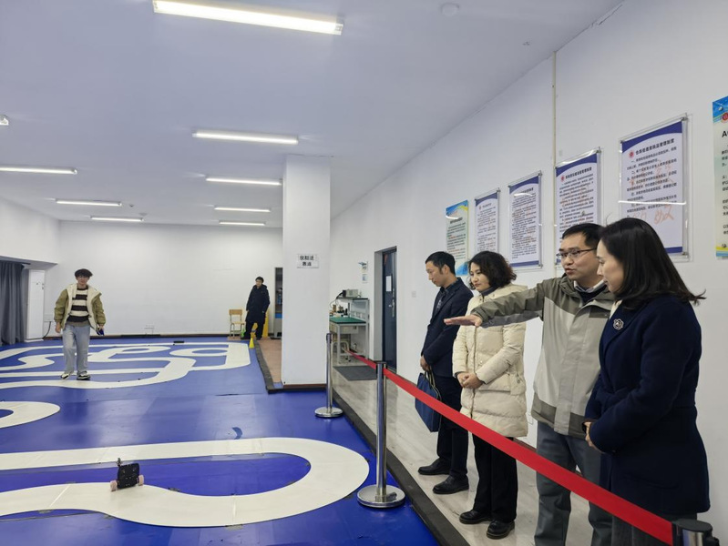 随后,陆咏梅一行走进“一站式”学生社区智能车创新实践基地,实地观摩备赛训练,听取全国大学生智能汽车竞赛组织筹备、备赛进展及历年成果汇报。她对学院在创新实践育人领域的显著成效予以高度赞许,鼓励师生团队勇攀高峰,在科创赛道上持续突破,彰显电气学子的创新活力与实干担当。